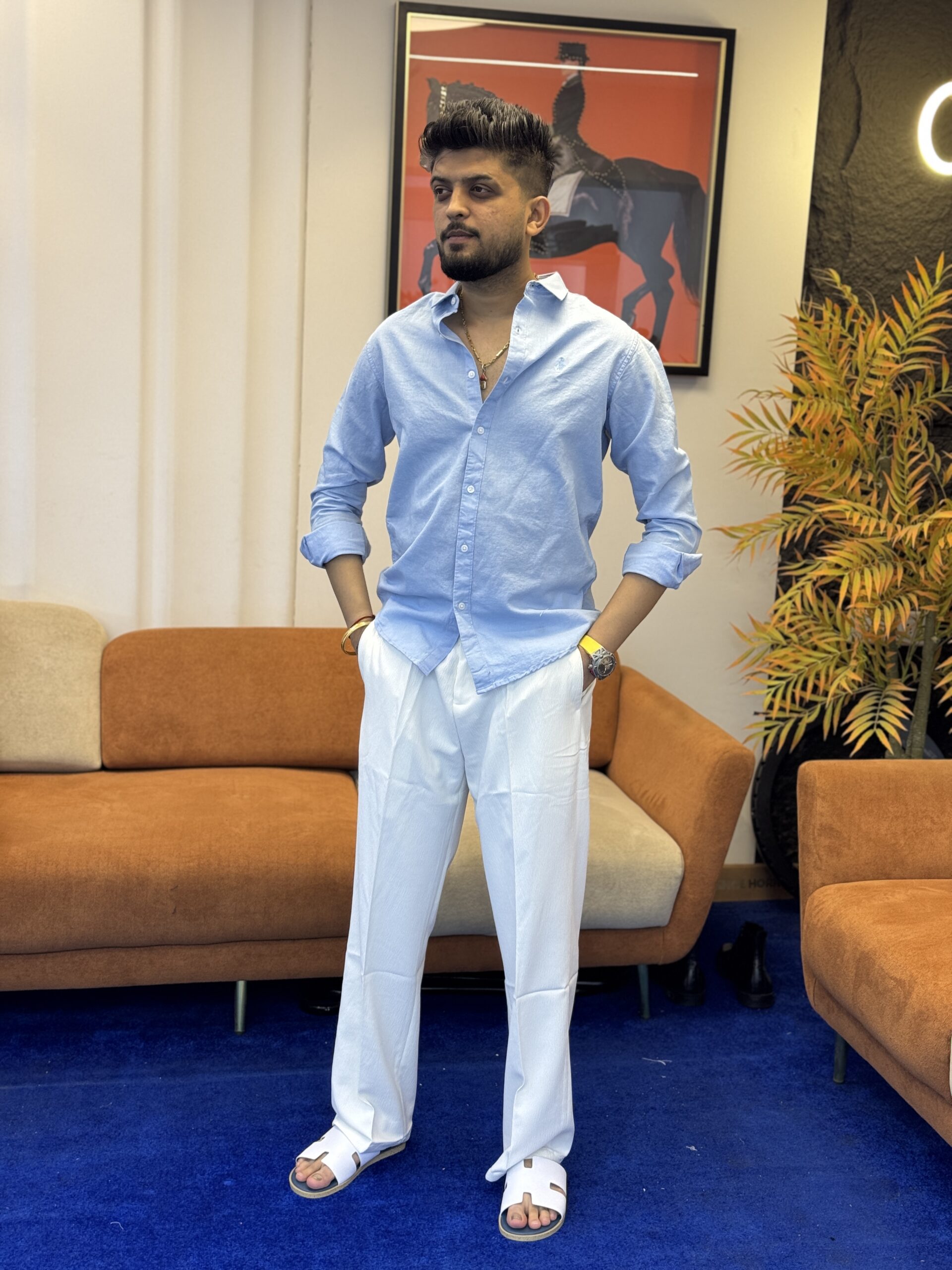 Upgrade your summer wardrobe with this premium sky blue linen shirt for men. Crafted from high-quality breathable linen fabric, this shirt ensures maximum comfort even in warm weather.